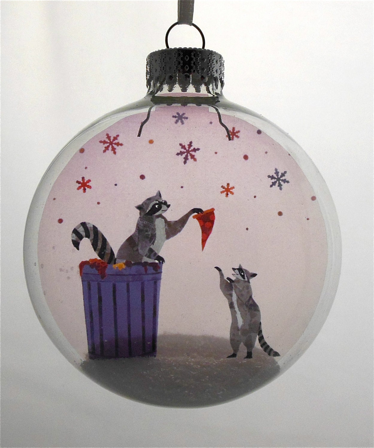This glass ornament features a design on transparency film along with a bit of glitter snow to shake around for fun.